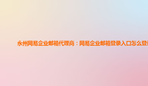 2024-01-13永州網(wǎng)易企業(yè)郵箱代理商:網(wǎng)易企業(yè)郵箱登錄入口怎么登錄 簡介: 網(wǎng)易企業(yè)郵箱是一款專業(yè)的企業(yè)級郵件服務(wù),為企業(yè)提供穩(wěn)定可靠的電子郵件服務(wù),具有豐富的功能和優(yōu)勢。 一、網(wǎng)易企業(yè)郵箱登錄入口 要登錄網(wǎng)易企業(yè)郵...
