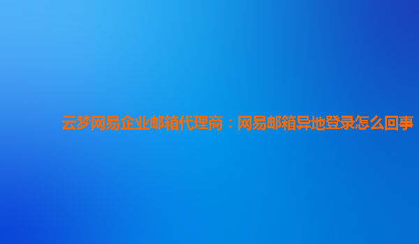 2024-01-13云夢(mèng)網(wǎng)易企業(yè)郵箱代理商:網(wǎng)易郵箱異地登錄怎么回事 1.什么是網(wǎng)易企業(yè)郵箱異地登錄 網(wǎng)易企業(yè)郵箱是一款功能強(qiáng)大的企業(yè)郵件服務(wù),可以方便企業(yè)進(jìn)行郵件收發(fā)、日程安排、任務(wù)分配等工作。異地登錄是指用戶在不同的地...