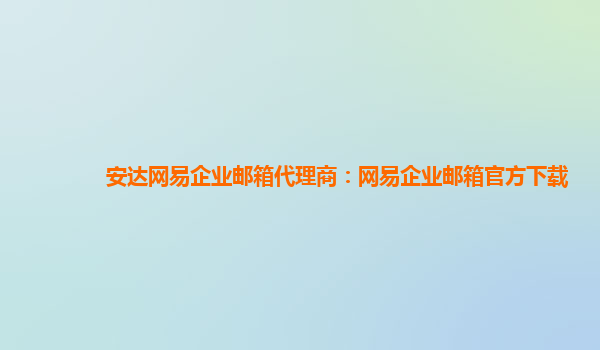 2024-01-12安達(dá)網(wǎng)易企業(yè)郵箱代理商:網(wǎng)易企業(yè)郵箱官方下載 一、網(wǎng)易企業(yè)郵箱的優(yōu)勢 網(wǎng)易企業(yè)郵箱作為一款專業(yè)的企業(yè)郵箱解決方案,具有許多優(yōu)勢: 強大的安全性:網(wǎng)易企業(yè)郵箱采用多重加密技術(shù),保護(hù)用戶的信息和數(shù)據(jù)安全...