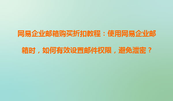 2025-08-21網(wǎng)易企業(yè)郵箱購買折扣教程:使用網(wǎng)易企業(yè)郵箱時,如何有效設(shè)置郵件權(quán)限,避免泄密? 一、網(wǎng)易企業(yè)郵箱的核心優(yōu)勢 網(wǎng)易企業(yè)郵箱作為國內(nèi)Top3的企業(yè)級郵件服務(wù)商,憑借以下核心優(yōu)勢成為眾多企業(yè)的首選...