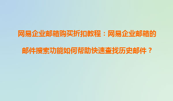 2025-08-21網(wǎng)易企業(yè)郵箱購買折扣教程:郵件搜索功能如何高效查找歷史郵件 一、前言:為什么選擇網(wǎng)易企業(yè)郵箱? 網(wǎng)易企業(yè)郵箱作為國內(nèi)領(lǐng)先的企業(yè)級郵件服務(wù)平臺,憑借其穩(wěn)定、安全、高效的特性,已成為眾多企...