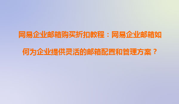 4008-020-360 網(wǎng)易企業(yè)郵箱購買折扣教程:靈活配置與管理的企業(yè)解決方案 一、網(wǎng)易企業(yè)郵箱的核心價值 作為國內(nèi)領(lǐng)先的企業(yè)級郵箱服務(wù)提供商,網(wǎng)易企業(yè)郵箱憑借以下優(yōu)勢成為眾多企業(yè)的首選: ...