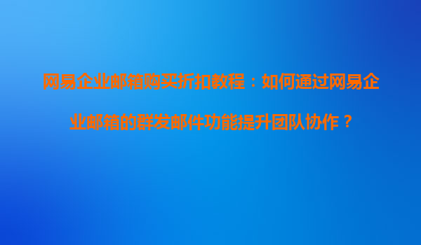 2025-08-20網(wǎng)易企業(yè)郵箱購買折扣教程:如何通過網(wǎng)易企業(yè)郵箱的群發(fā)郵件功能提升團隊協(xié)作? 在當(dāng)今快節(jié)奏的職場環(huán)境中,高效的團隊協(xié)作是企業(yè)成功的關(guān)鍵。而企業(yè)郵箱作為日常溝通的重要工具,其性能和功能直接影...