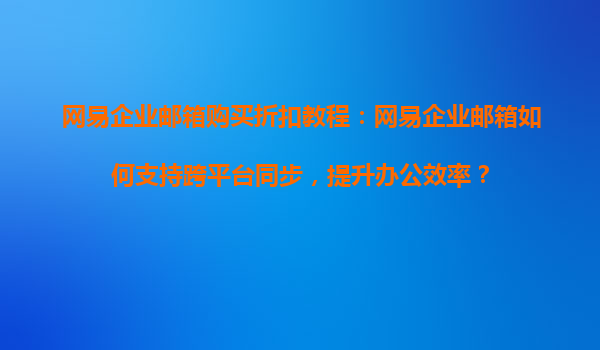 2025-08-20網(wǎng)易企業(yè)郵箱購買折扣教程:網(wǎng)易企業(yè)郵箱如何支持跨平臺同步,提升辦公效率? 在當(dāng)今快節(jié)奏的數(shù)字化辦公環(huán)境中,選擇一個穩(wěn)定、高效且支持跨平臺同步的企業(yè)郵箱服務(wù)顯得尤為重要。網(wǎng)易企業(yè)郵箱作為國內(nèi)領(lǐng)先的企業(yè)...