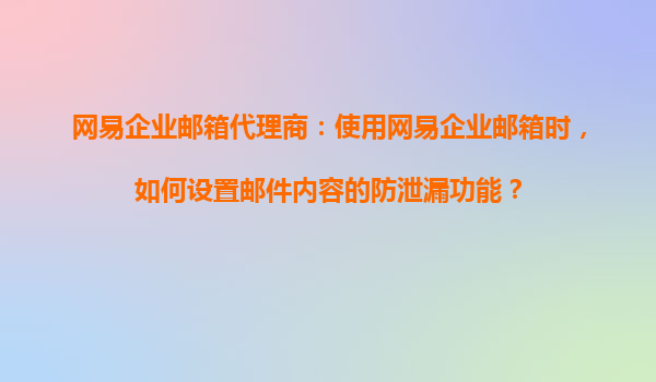 2025-08-20網(wǎng)易企業(yè)郵箱代理商:如何設(shè)置郵件內(nèi)容的防泄漏功能 網(wǎng)易企業(yè)郵箱的安全防護優(yōu)勢 作為國內(nèi)領(lǐng)先的企業(yè)級郵箱服務(wù)提供商,網(wǎng)易企業(yè)郵箱憑借其強大的安全性能和便捷的管理功能,贏得了眾多企業(yè)的信賴。其中,郵件...