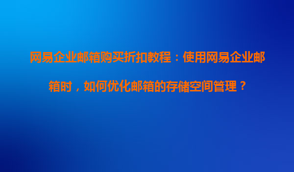 2025-08-20網(wǎng)易企業(yè)郵箱購買折扣教程:優(yōu)化存儲空間管理 一、網(wǎng)易企業(yè)郵箱的優(yōu)勢與存儲管理需求 網(wǎng)易企業(yè)郵箱作為國內(nèi)領(lǐng)先的企業(yè)通信解決方案,提供高穩(wěn)定性郵件服務(wù)、超大附件支持(最高3G單封郵件)、...