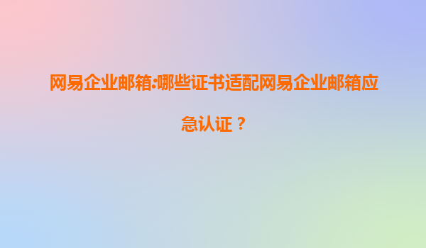 2025-08-18網(wǎng)易企業(yè)郵箱:哪些證書適配網(wǎng)易企業(yè)郵箱應(yīng)急認(rèn)證? 一、網(wǎng)易企業(yè)郵箱的優(yōu)勢(shì) 網(wǎng)易企業(yè)郵箱作為國(guó)內(nèi)領(lǐng)先的企業(yè)郵箱服務(wù)提供商,憑借其穩(wěn)定、安全、高效的特性,贏得了眾多企業(yè)的信賴。以下是網(wǎng)易企業(yè)郵...