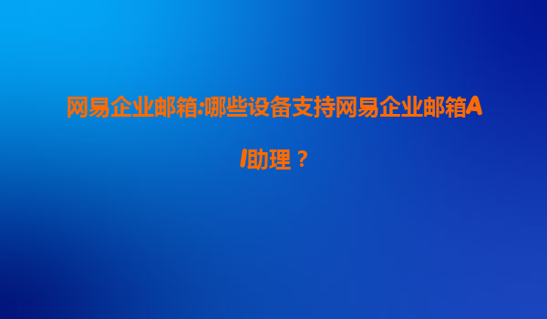 2025-08-17網(wǎng)易企業(yè)郵箱AI助理支持的設(shè)備 網(wǎng)易企業(yè)郵箱AI助理作為一項(xiàng)創(chuàng)新功能,為用戶提供了智能化的郵件管理體驗(yàn)。目前,該功能支持多類設(shè)備,包括但不限于PC端(Windows和Mac操作系統(tǒng))、移動(dòng)端(iOS和Android系統(tǒng)),以及...