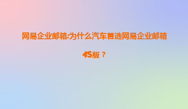 2025-08-17網(wǎng)易企業(yè)郵箱:為什么汽車行業(yè)首選網(wǎng)易企業(yè)郵箱4S版? 在數(shù)字化飛速發(fā)展的今天,企業(yè)郵箱作為企業(yè)溝通和運(yùn)營(yíng)的重要工具,其安全性、穩(wěn)定性和功能性已成為企業(yè)選擇的關(guān)鍵因素。尤其是對(duì)于汽車行業(yè)而言,高效...