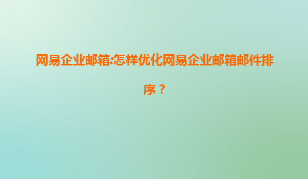 2025-08-14網(wǎng)易企業(yè)郵箱:怎樣優(yōu)化網(wǎng)易企業(yè)郵箱郵件排序? 一、網(wǎng)易企業(yè)郵箱的郵件排序功能概述 網(wǎng)易企業(yè)郵箱作為國(guó)內(nèi)領(lǐng)先的企業(yè)級(jí)郵件服務(wù)提供商,其郵件管理功能全面且高效。郵件排序是日常郵件處理中的一個(gè)關(guān)鍵環(huán)...