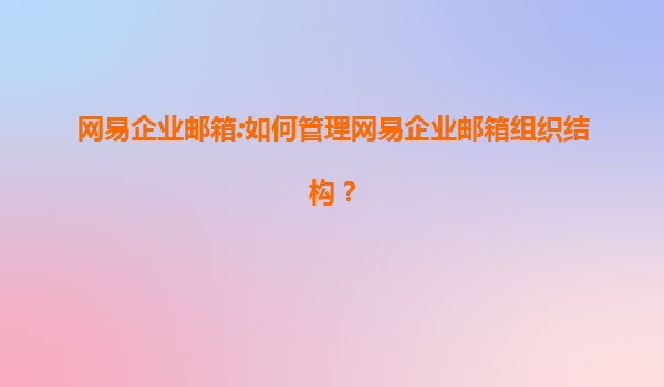 2025-08-11網(wǎng)易企業(yè)郵箱:如何高效管理企業(yè)組織結(jié)構(gòu)? 一、網(wǎng)易企業(yè)郵箱的組織結(jié)構(gòu)管理功能概述 網(wǎng)易企業(yè)郵箱作為國內(nèi)領(lǐng)先的企業(yè)級(jí)郵件服務(wù)提供商,其核心優(yōu)勢(shì)之一在于強(qiáng)大的組織結(jié)構(gòu)管理能力。通過分層級(jí)的部門架構(gòu)...