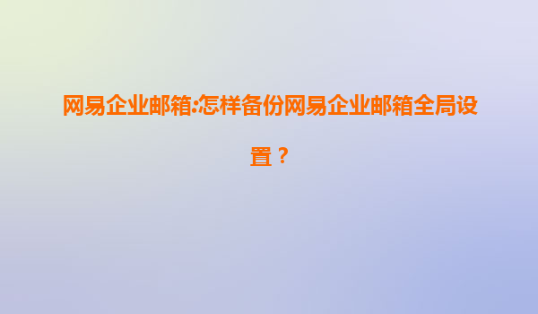 2025-08-11網(wǎng)易企業(yè)郵箱:怎樣備份網(wǎng)易企業(yè)郵箱全局設(shè)置? 一、網(wǎng)易企業(yè)郵箱的核心優(yōu)勢(shì) 網(wǎng)易企業(yè)郵箱作為國內(nèi)領(lǐng)先的企業(yè)級(jí)郵件服務(wù)提供商,憑借以下優(yōu)勢(shì)成為眾多企業(yè)的首選: 高安全性:采用SSL/TLS加密...