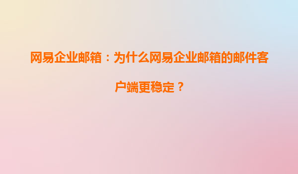 2025-08-06網(wǎng)易企業(yè)郵箱:為什么網(wǎng)易企業(yè)郵箱的郵件客戶端更穩(wěn)定? 在當(dāng)今快節(jié)奏的商業(yè)環(huán)境中,企業(yè)郵箱作為溝通的重要工具,其穩(wěn)定性直接影響到企業(yè)的運(yùn)營效率。網(wǎng)易企業(yè)郵箱憑借其卓越的技術(shù)實(shí)力和豐富的服務(wù)...