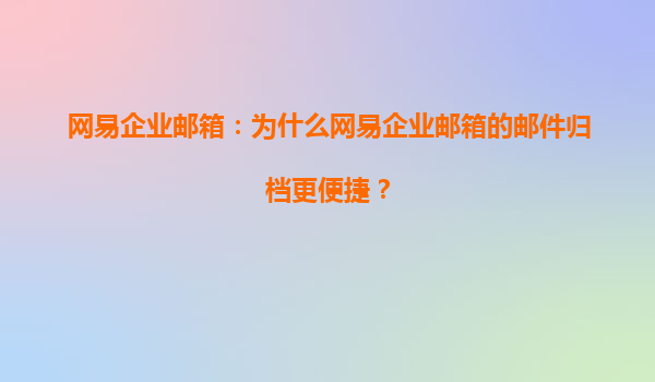 2025-08-05網(wǎng)易企業(yè)郵箱郵件歸檔功能的高效便捷性 一、智能化歸檔技術(shù)提升管理效率 網(wǎng)易企業(yè)郵箱采用先進(jìn)的智能化歸檔技術(shù),通過預(yù)設(shè)規(guī)則自動(dòng)分類存儲(chǔ)郵件,支持按時(shí)間、發(fā)件人、主題等多維度快速歸檔。管理員無需手...