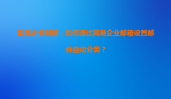 2025-08-05網(wǎng)易企業(yè)郵箱:如何通過網(wǎng)易企業(yè)郵箱設(shè)置郵件自動(dòng)分類? 一、郵件自動(dòng)分類的重要性 在企業(yè)的日常運(yùn)營中,郵件是溝通的重要工具之一。隨著業(yè)務(wù)量的增加,郵件數(shù)...