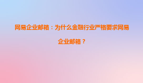 2025-08-04網(wǎng)易企業(yè)郵箱:為什么金融行業(yè)嚴(yán)格要求網(wǎng)易企業(yè)郵箱? 一、金融行業(yè)的特殊性對郵箱系統(tǒng)的嚴(yán)苛要求 金融行業(yè)作為國民經(jīng)濟(jì)的重要支柱,其業(yè)務(wù)涉及大量敏感數(shù)據(jù)和資金往來,對信息安全、合規(guī)性及穩(wěn)定性有著近...