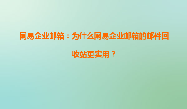 2025-08-05網(wǎng)易企業(yè)郵箱:為什么網(wǎng)易企業(yè)郵箱的郵件回收站更實(shí)用? 在當(dāng)今快節(jié)奏的商業(yè)環(huán)境中,企業(yè)郵箱已成為企業(yè)日常溝通不可或缺的工具。作為國內(nèi)領(lǐng)先的企業(yè)郵箱服務(wù)提供商,網(wǎng)易企業(yè)郵箱憑借其穩(wěn)定、安全、高效的...