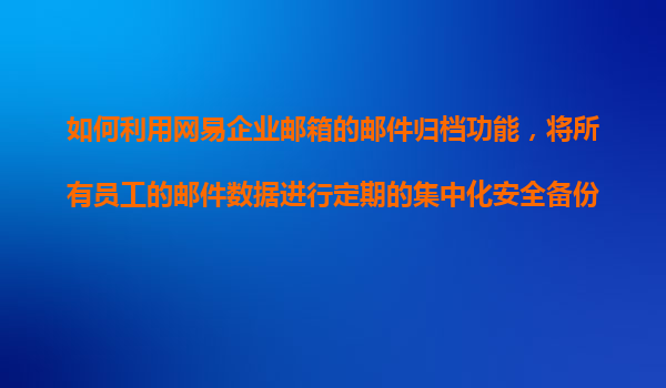 2025-11-09如何利用網(wǎng)易企業(yè)郵箱的郵件歸檔功能實(shí)現(xiàn)集中化安全備份 一、郵件歸檔功能的行業(yè)需求背景 隨著企業(yè)數(shù)字化進(jìn)程加速,電子郵件作為核心辦公載體,其數(shù)據(jù)資產(chǎn)價(jià)值日益凸顯。根據(jù)IDC調(diào)研報(bào)告,83%的企業(yè)將郵件歸檔列...