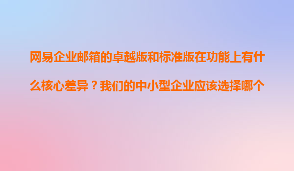 2025-11-09網(wǎng)易企業(yè)郵箱卓越版與標(biāo)準(zhǔn)版功能對(duì)比及中小企業(yè)選型指南 網(wǎng)易企業(yè)郵箱的核心優(yōu)勢 網(wǎng)易企業(yè)郵箱作為國內(nèi)頭部企業(yè)級(jí)郵件服務(wù)商,以其穩(wěn)定安全的服務(wù)、智能高效的辦公協(xié)同功能深受企業(yè)信賴。其核心優(yōu)勢體現(xiàn)在...
