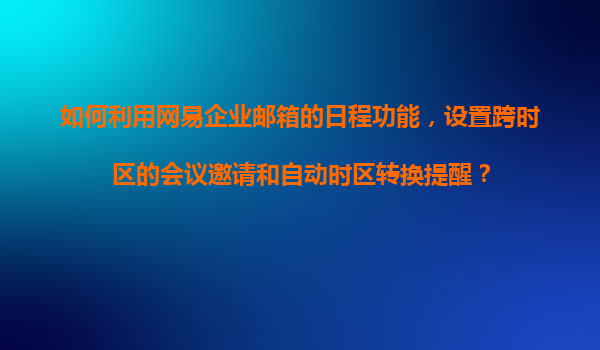 2025-11-09如何利用網(wǎng)易企業(yè)郵箱的日程功能高效管理跨時(shí)區(qū)會(huì)議 一、網(wǎng)易企業(yè)郵箱日程功能的優(yōu)勢 網(wǎng)易企業(yè)郵箱作為國內(nèi)領(lǐng)先的企業(yè)級(jí)郵件服務(wù),其日程管理功能在跨時(shí)區(qū)協(xié)作場景中具有顯著優(yōu)勢: ...