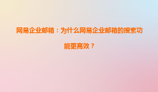 2025-07-31網(wǎng)易企業(yè)郵箱:為什么網(wǎng)易企業(yè)郵箱的搜索功能更高效? 在當今快節(jié)奏的商業(yè)環(huán)境中,企業(yè)郵箱不僅是溝通的工具,更是信息管理的核心平臺。高效的搜索功能能夠幫助用戶快速定位關(guān)鍵郵件,提升工作效率。網(wǎng)易企...