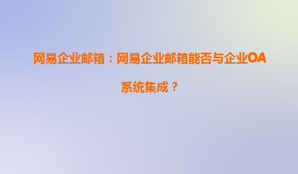2025-07-31網(wǎng)易企業(yè)郵箱:網(wǎng)易企業(yè)郵箱能否與企業(yè)OA系統(tǒng)集成? 一、網(wǎng)易企業(yè)郵箱的核心優(yōu)勢 網(wǎng)易企業(yè)郵箱作為國內(nèi)領(lǐng)先的企業(yè)級郵件服務提供商,憑借其穩(wěn)定、安全、高效的...