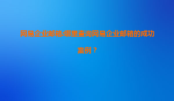 2025-07-22網(wǎng)易企業(yè)郵箱:哪里查詢網(wǎng)易企業(yè)郵箱的成功案例? 一、網(wǎng)易企業(yè)郵箱的行業(yè)認(rèn)可與成功案例查詢渠道 若想了解網(wǎng)易企業(yè)郵箱的實(shí)際應(yīng)用效果,可通過以下官方途徑查...