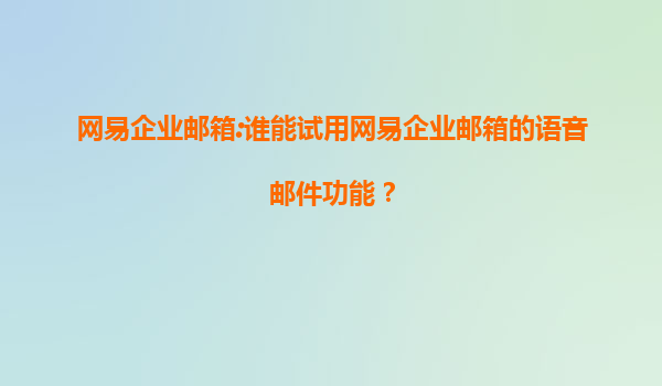 2025-07-22網(wǎng)易企業(yè)郵箱:語(yǔ)音郵件功能的試用資格詳解 作為國(guó)內(nèi)領(lǐng)先的企業(yè)郵箱服務(wù)提供商,網(wǎng)易企業(yè)郵箱憑借其穩(wěn)定性和創(chuàng)新功能贏得了眾多企業(yè)的青睞。其中,語(yǔ)音郵件功能更是為企業(yè)溝通帶來了全新的體驗(yàn)。那么,究竟誰(shuí)能夠試...