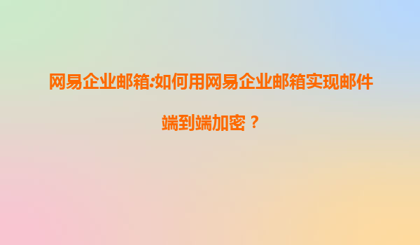 2025-07-19網(wǎng)易企業(yè)郵箱:如何實現(xiàn)郵件端到端加密? 隨著信息安全意識的提升,企業(yè)對郵件的隱私保護需求日益增長。端到端加密(End-to-EndEncryption,E2EE)技術能夠確保郵件內容在傳輸和存儲過程中僅由發(fā)件人和收件人...