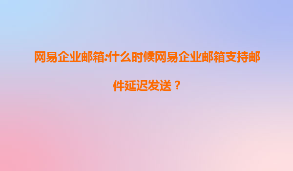 4008-020-360 網(wǎng)易企業(yè)郵箱:什么時候網(wǎng)易企業(yè)郵箱支持郵件延遲發(fā)送? 在當今快節(jié)奏的商業(yè)環(huán)境中,高效、便捷的郵件溝通是企業(yè)運營中不可或缺的一部分。作為國內領先的企業(yè)郵箱服務提供商,網(wǎng)易企業(yè)郵...