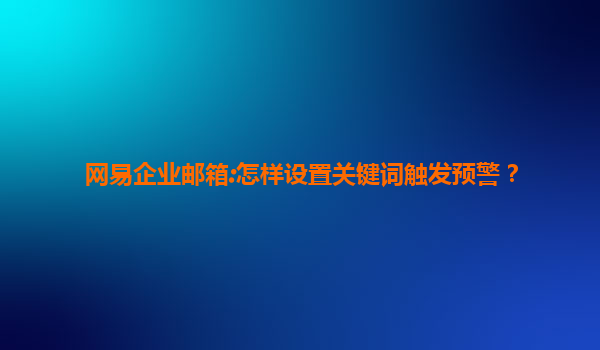 2025-07-17網(wǎng)易企業(yè)郵箱:如何設(shè)置關(guān)鍵詞觸發(fā)預(yù)警? 一、為什么要設(shè)置關(guān)鍵詞預(yù)警? 在日常企業(yè)郵件管理中,敏感信息、業(yè)務(wù)風(fēng)險(xiǎn)或重要內(nèi)容的監(jiān)控非常關(guān)鍵。網(wǎng)易企業(yè)郵箱提供的關(guān)鍵詞預(yù)警功能,能夠...