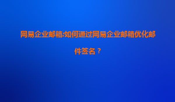 2025-07-17網(wǎng)易企業(yè)郵箱:如何通過優(yōu)化郵件簽名提升企業(yè)形象 為什么郵件簽名對(duì)企業(yè)溝通至關(guān)重要 在商務(wù)往來中,郵件簽名就像是企業(yè)的電子名片,它不僅承載著發(fā)件人的基本信息,更是企業(yè)形象的重要展示窗口。一個(gè)規(guī)范、專...