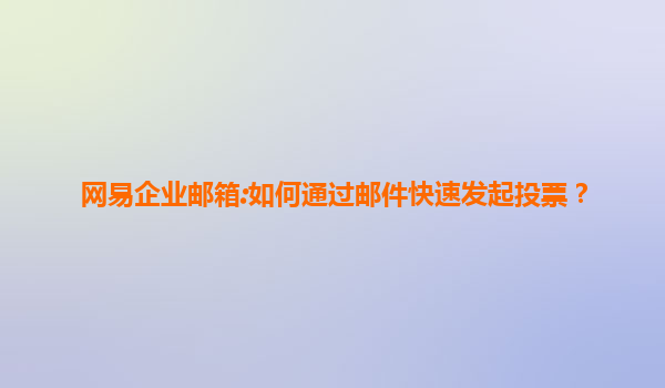 2025-07-14網(wǎng)易企業(yè)郵箱:如何通過郵件快速發(fā)起投票? 在現(xiàn)代企業(yè)辦公場景中,高效的溝通與決策至關(guān)重要。網(wǎng)易企業(yè)郵箱憑借其強大的功能,為用戶提供了通過郵件快速發(fā)起投票的便捷方式,顯著提升了團隊協(xié)作效率。本文...
