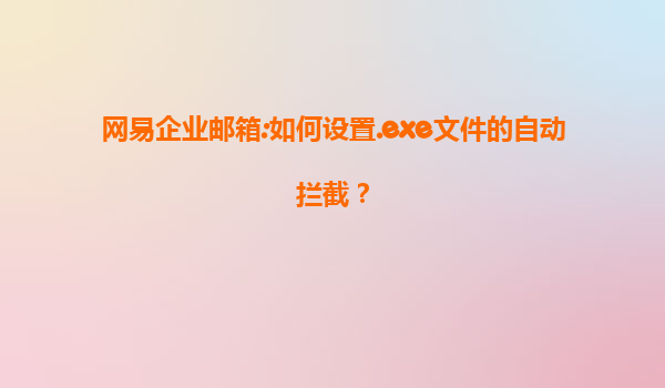 2025-07-15網(wǎng)易企業(yè)郵箱:如何設(shè)置.exe文件的自動攔截 一、引言 在企業(yè)日常郵件往來中,.exe等可執(zhí)行文件通常是病毒或惡意軟件的主要傳播載體。為了保障企業(yè)信息安全,網(wǎng)易企業(yè)郵箱提供了強大的附件過濾功能,支持對特...