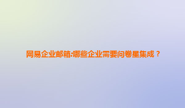 2025-07-15網(wǎng)易企業(yè)郵箱與問卷星集成:賦能企業(yè)數(shù)據(jù)化管理 一、哪些企業(yè)需要問卷星集成? 問卷星作為國內(nèi)領(lǐng)先的在線問卷調(diào)查平臺,與網(wǎng)易企業(yè)郵箱的深度集成能為多類型企業(yè)帶來高效協(xié)作體驗。以下五類企業(yè)尤...