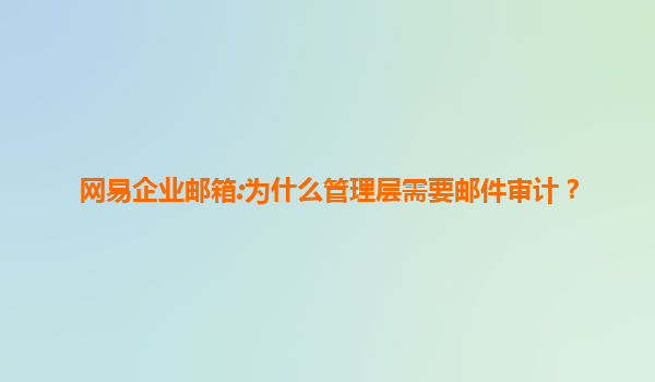 2025-07-11網(wǎng)易企業(yè)郵箱:為什么管理層需要郵件審計(jì)? 一、企業(yè)郵件審計(jì)的必要性 在數(shù)字化辦公時(shí)代,電子郵件作為企業(yè)內(nèi)部溝通的重要工具,承載著大量敏感信息和業(yè)務(wù)數(shù)據(jù)。管理層對(duì)郵件進(jìn)行審計(jì)不僅是合規(guī)性的要...
