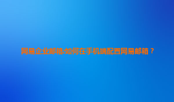 2025-07-09網(wǎng)易企業(yè)郵箱:如何在手機(jī)端配置網(wǎng)易郵箱 隨著移動(dòng)辦公的普及,企業(yè)郵箱的移動(dòng)端配置已成為高效工作的必備技能。網(wǎng)易企業(yè)郵箱憑借其穩(wěn)定性、安全性和豐富的功能,成為眾多企業(yè)的首選。本文將詳細(xì)介紹如何在手機(jī)...