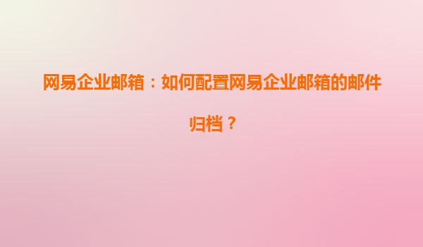 4008-020-360 網(wǎng)易企業(yè)郵箱:如何配置網(wǎng)易企業(yè)郵箱的郵件歸檔? 一、網(wǎng)易企業(yè)郵箱郵件歸檔功能概述 網(wǎng)易企業(yè)郵箱作為國內(nèi)領(lǐng)先的企業(yè)級(jí)郵箱服務(wù)提供商,其郵件歸檔功能是企業(yè)數(shù)據(jù)管理的重要組成部分。郵件歸檔是指將企業(yè)...