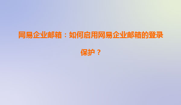 2025-07-07網(wǎng)易企業(yè)郵箱:如何啟用網(wǎng)易企業(yè)郵箱的登錄保護(hù)? 一、網(wǎng)易企業(yè)郵箱的優(yōu)勢(shì) 網(wǎng)易企業(yè)郵箱作為國內(nèi)領(lǐng)先的企業(yè)郵箱服務(wù)提供商,憑借其強(qiáng)大的功能、穩(wěn)定的性能和卓越的安全性,贏得了眾多企業(yè)的信賴。...