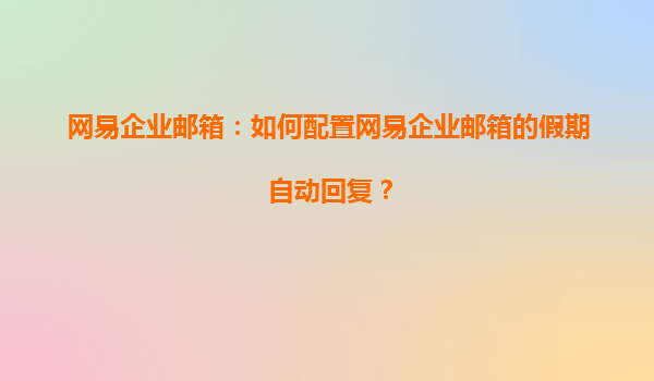 2025-07-06網(wǎng)易企業(yè)郵箱:如何配置網(wǎng)易企業(yè)郵箱的假期自動(dòng)回復(fù)? 一、網(wǎng)易企業(yè)郵箱的優(yōu)勢(shì) 網(wǎng)易企業(yè)郵箱作為國內(nèi)領(lǐng)先的企業(yè)郵箱服務(wù)提供商,憑借其穩(wěn)定、安全、高效的特點(diǎn),深受廣大企業(yè)用戶的信賴。以下是網(wǎng)易企業(yè)郵...