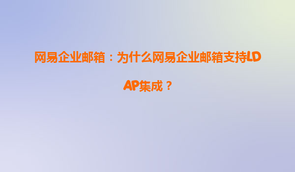 2025-07-07網(wǎng)易企業(yè)郵箱支持LDAP集成的意義 網(wǎng)易企業(yè)郵箱作為國內(nèi)領(lǐng)先的企業(yè)級(jí)郵箱服務(wù)提供商,其支持LDAP(輕量級(jí)目錄訪問協(xié)議)集成的功能,為企業(yè)用戶帶來了極大的便利。LDAP是一種廣泛應(yīng)用于企業(yè)目錄服務(wù)的協(xié)議,能夠...