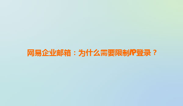 2025-07-02網(wǎng)易企業(yè)郵箱:為什么需要限制IP登錄? 一、企業(yè)郵箱安全的重要性 在數(shù)字化辦公時(shí)代,企業(yè)郵箱不僅是溝通工具,更是重要數(shù)據(jù)和商業(yè)機(jī)密的載體。網(wǎng)易企業(yè)郵箱作...