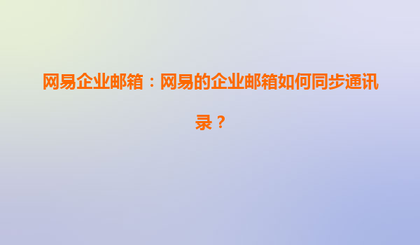 2025-07-03網(wǎng)易企業(yè)郵箱:如何高效同步通訊錄及其代理優(yōu)勢(shì) 一、網(wǎng)易企業(yè)郵箱通訊錄同步的核心價(jià)值 在企業(yè)日常運(yùn)營中,通訊錄的高效管理直接影響團(tuán)隊(duì)協(xié)作效率。網(wǎng)易企業(yè)郵箱提供的...