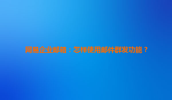 2025-07-02網(wǎng)易企業(yè)郵箱:郵件群發(fā)功能使用指南與企業(yè)優(yōu)勢(shì)解析 一、網(wǎng)易企業(yè)郵箱郵件群發(fā)功能概述 網(wǎng)易企業(yè)郵箱的郵件群發(fā)功能是一項(xiàng)高效的企業(yè)通信工具,允許用戶一次性向多個(gè)收件人發(fā)送相同內(nèi)容的郵件。該功能支持靈...