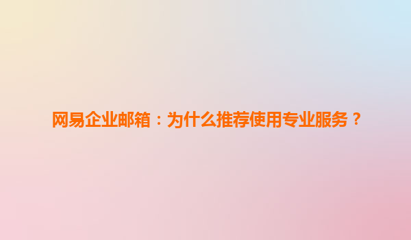 2025-07-02網(wǎng)易企業(yè)郵箱:為什么推薦使用專業(yè)服務(wù)? 在當(dāng)今數(shù)字化商業(yè)環(huán)境中,專業(yè)的電子郵件服務(wù)不僅是企業(yè)溝通的基礎(chǔ)設(shè)施,更是品牌形象和管理效率的重要體現(xiàn)。作為國內(nèi)領(lǐng)先的企業(yè)郵箱服務(wù)商,網(wǎng)易企業(yè)郵箱憑借其穩(wěn)定、安全...