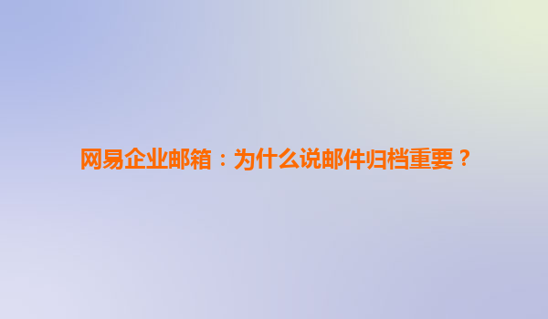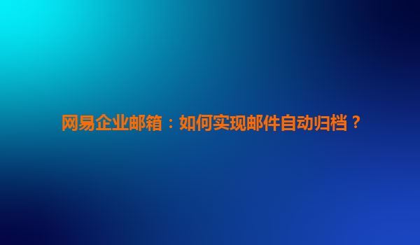 2025-07-01網(wǎng)易企業(yè)郵箱郵件自動(dòng)歸檔功能詳解 一、自動(dòng)歸檔的企業(yè)管理價(jià)值 隨著企業(yè)數(shù)字化進(jìn)程加速,郵件作為重要信息載體,其管理效率直接影響運(yùn)營(yíng)成本。網(wǎng)易企業(yè)郵箱的自動(dòng)歸檔功能通過智能規(guī)則設(shè)置,可實(shí)現(xiàn)將往來...