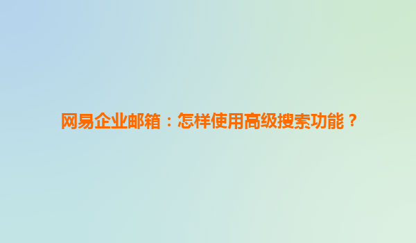2025-07-01網(wǎng)易企業(yè)郵箱:怎樣使用高級(jí)搜索功能? 一、網(wǎng)易企業(yè)郵箱簡(jiǎn)介 網(wǎng)易企業(yè)郵箱是國(guó)內(nèi)領(lǐng)先的企業(yè)級(jí)郵件服務(wù)提供商,憑借網(wǎng)易20余年的郵箱運(yùn)營(yíng)經(jīng)驗(yàn),為企業(yè)用戶提供穩(wěn)定、安全、高效的郵件服務(wù)。其功能豐富,界...