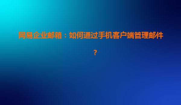 2025-07-01網(wǎng)易企業(yè)郵箱:如何通過手機(jī)客戶端管理郵件? 一、網(wǎng)易企業(yè)郵箱手機(jī)客戶端簡(jiǎn)介 隨著移動(dòng)辦公的普及,手機(jī)端高效處理郵件已成為企業(yè)員工的剛需。網(wǎng)易企業(yè)郵箱提供全平臺(tái)兼容的移動(dòng)端解決...