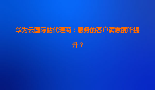 2026-01-10華為云國(guó)際站代理商:如何提升客戶滿意度? 引言 在云計(jì)算服務(wù)競(jìng)爭(zhēng)日益激烈的今天,作為華為云國(guó)際站的代理商,提升客戶滿意度不僅是維系業(yè)務(wù)增長(zhǎng)的關(guān)鍵,更是構(gòu)建長(zhǎng)期合作關(guān)系的基石。...