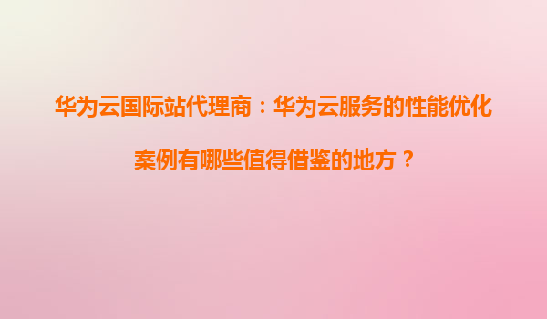 2026-01-09華為云國(guó)際站代理商:華為云服務(wù)的性能優(yōu)化案例有哪些值得借鑒的地方? 引言 隨著云計(jì)算技術(shù)的快速發(fā)展,企業(yè)對(duì)云服務(wù)的性能要求越來(lái)越高。作為全球領(lǐng)先的云服務(wù)提供商之一,華為云通過(guò)其強(qiáng)大的技術(shù)實(shí)力和...